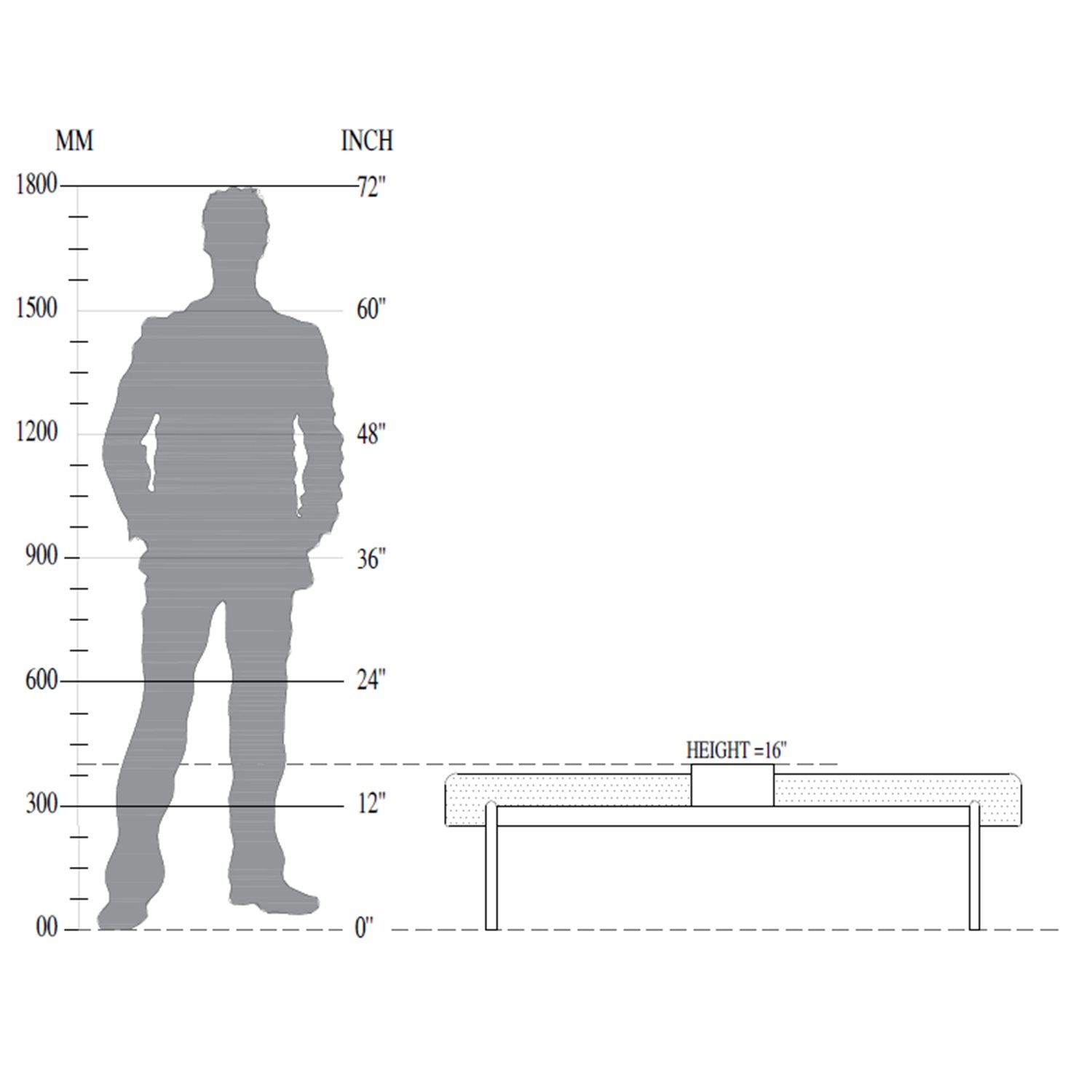 L55" x D16" x H16" Inch